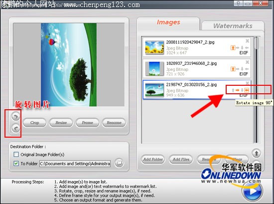 ”“ ”旋转图片,也可以单击图像缩略图后面的四个箭头来旋转图片。如图6所示。