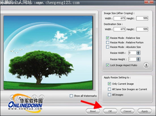 图7 还可以设置图片的输出尺寸;单击“Resize”按钮,在打开的窗口中调整图片的大小。如图8所示。
