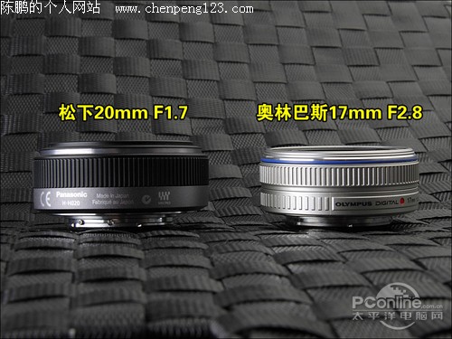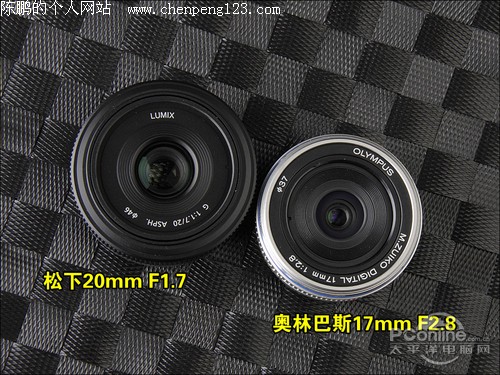松下GF1的套机镜头为20mm F1.7的饼干头,而奥林巴斯E-P1为17mm F2.8的饼干头,采用饼干头设计可以使得相机更为小型化,更加便于携带,松下套机镜头因光圈比较大,所以无论是厚度还是直径都明显比奥林巴斯17mm F2.8镜头要大一圈,而且镜头的孔径也要更大,粗犷型的造型深入人心。两款镜头都设定为与机身同色,搭配起来会比较好看,同时设定的是电子对焦环,镜头在关机时会回缩到最短状态。