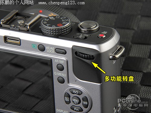 咋一看松下GF1只有一个转盘,但是和松下G1一样,这个转盘有拨动与按压两种操作,通过按压可以切换不同的功能,在手动曝光档,一个转盘就可以控制光圈和快门,同样设计在拇指位置,使用比较顺手。相对E-P1来说,有点优势。