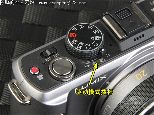 与E-P1需要进入菜单选择的不同,松下GF1的驱动模式是通过拨杆调节的,这样的设计很有以往手动胶卷相机的风格,直观而且快捷,实际使用的时候可以提高拍摄效率。