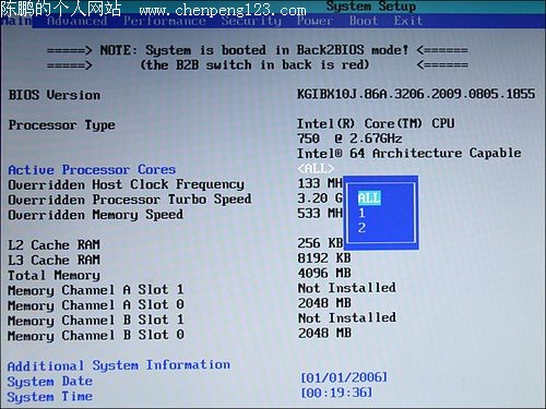 让人惊喜的是,Intel DP55KG主板还是提供了比较丰富超频设置的,并且能够保存默认、动态设置与用户预置三种频率模式。不过我们发现,该主板外频最大只能调240MHz,很难满足专注于低倍频超频来跑分的玩家胃口。 此外,该主板还支持Intel推崇的Intel Turbo Boost技术,该技术可以实现单个核心的倍频设置,可以将每个核心都可以独立运作在高倍频上,不过估计评测CPU是工程样品的关系,我们打开了Intel Turbo Boost技术,并且将两个核心设置成24倍频,但在CPU-Z中还是显示21的倍频。