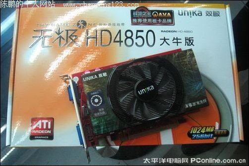 双敏的这款无极HD4850大牛版采用了非公版的方案设计,采用55nm制程的AMD-ATI RV770核心,核心频率为650MHz,内建9.56亿晶体管数量,采用统一超标量着色架构,拥有800个流处理器,40个纹理着色单元,以及16个光栅处理单元,完整支持DirectX 10.1、Shader Model 4.1以及PCI-E 2.0技术。具有UVD二代硬件解码引擎,并支持升级后的ATI Powerplay自动节能技术,同时支持整合式HDMI音视频同步输出。显存方面,采用了奇梦达的1.0ns GDDR3颗粒,默认的工作频率为1800MHz,还具有一定的超频空间。板载8颗32Mx32bit颗粒,组成1GB/256bit,应对渐成主流的24寸宽屏显示器的1920x1080分辨率游戏运行也游刃有余。