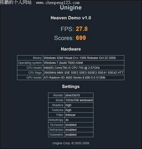 Heaven benchmark提供了DirectX9、DirectX10、DirectX11三种模式、并且它能完美地支持hardwaretessellation)、DirectCompute、ShaderModel5.0等技术,在运用DX11模式运行游戏时,整个游戏的画质非常绚丽。