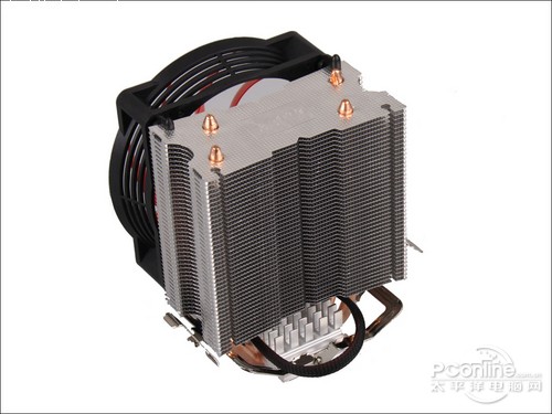 终极者 圣斗士散热器采用了并行双6mm热管通过穿FIN工艺技术与各层散热鳍片相连,两根并行热管等效于四热管能迅速地将底座的热量传导到各散热鳍片上,加快热量的散发速度。