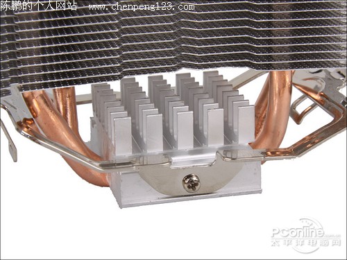 而终极者 圣斗士散热器底座上的散热鳍片则是加强散热设计,在热管将大部分热量传导到上面各层散热鳍片的同时,底座上的这组散热鳍片也将部分热量由这里排出,防止热量在底座上堆积。