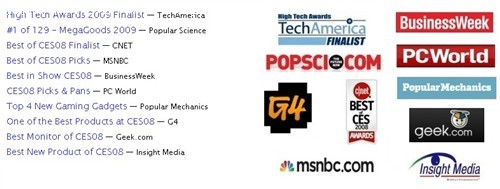 ● 最低显卡要求 Ostendo CRVD与现有的图形显示卡和游戏的工作,因此没有特殊的硬件或软件的需要,几乎现有的所有显卡都支持这个配置。不过官方也给出了显卡的最低配置,当然如果是发烧友的话这个最低标配早已不在话下。 Ostendo称,这个液晶显示器支持Geforce 8800以上、HD 3000以上的绝大多数显卡,并且不需要安装额外的驱动程序。许多游戏也支持CRVD,包括极品飞车13、虚幻竞技场3和魔兽世界等,Ostendo的官网上有完整的名单,而全文最后我们也将一一展示部分游戏画面截图。 ● 产品相关参数特征