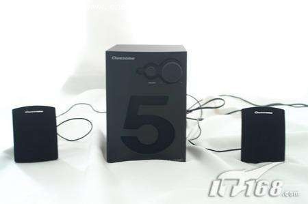 傲森M-50T 傲森这款“星期五”外观独特,低音炮导向孔做成了一个数字5的造型,搭配纯黑的箱体,给人感觉活力十足,音箱的体积并不算大,低音箱采用4英寸低音扬声器,卫星则采用了2英寸全频带扬声器,输出功率为10W,这样的配备完全可以满足一般装机用户的使用需要。
