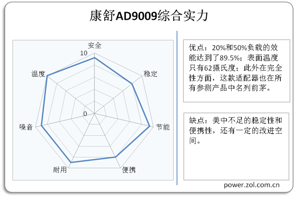 性能方面,康舒AD9009表现出了高人一筹的绝对实力,无论是完全性、节能型以及稳定性,均达到了优秀的水平。