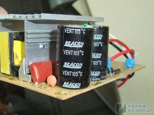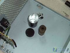 山寨电源只使用0.6mm的劣质板材,无喷漆处已经开始锈蚀。这要比正规电源使用的0.8mm/1mm厚SECC镀锌钢板要差很多,安全保护作用要差不少。 ●山寨电源典型症状——主电容缩水 一般而言,多数普通电源只使用耐温值达80°C-105°C之间的大块头储能电容,而105°C的大块头储能电容多只用在中高端产品上。那么山寨电源都采用什么样的主电容呢?