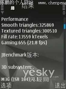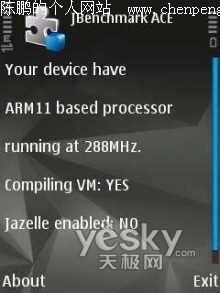 扩展功能测试 N82机身内置132MB内存,用户实际可用的空间约为90MB。扩展方面采用了Micro SD卡,对于2GB和4GB的存储卡都能完美支持,在测试版本中搭载的存储卡容量为2GB,已经完全可以让大多数用户娱乐用户满意。在数据传输方面可以通过蓝牙V2.0模块和数据线实现,在传输速率方面中规中矩,USB数据线的速率大概停留在USB1.1水准,而蓝牙表现则比较稳定,能够保持在60KB/S上下,此外还提供了对蓝牙立体声的支持。通过软件观察,我们了解到N82采用了主频为290Mhz得高速CPU,对于系统性能提升有很大得帮助,在测试成绩上与N95基本持平。