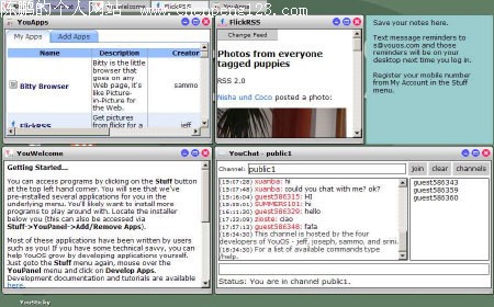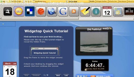 YouOS是一个非常优秀的WebOS,使用JavaScript来与服务器交换数据,在进行下一步操作之前,上一步的操作会被记录,方便返回。另外,YouOS在在线协同操作方面做得非常优秀。 10、Widgetop