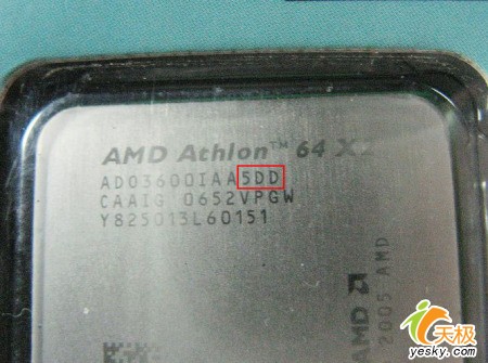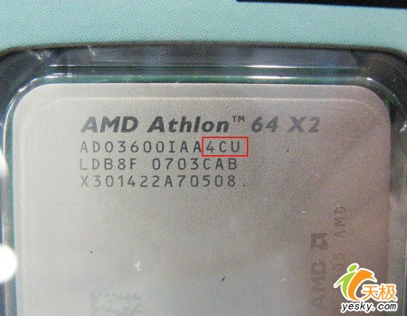 虽然目前65nm与90nm的X2 3600+共存,但新旧两版X2 3600+还是比较容易区别的,以上两幅图中我们可以看到,两款产品的CPU的编号有所不同,90nm处理器编号后三位为“4CU”,65nm X2 3600+的编号后三位为“5DD”,其中数字是“5”代表处理器L2 cache大小为512KB×2,DD为Part Definition,代表65nm Brisbane核心。