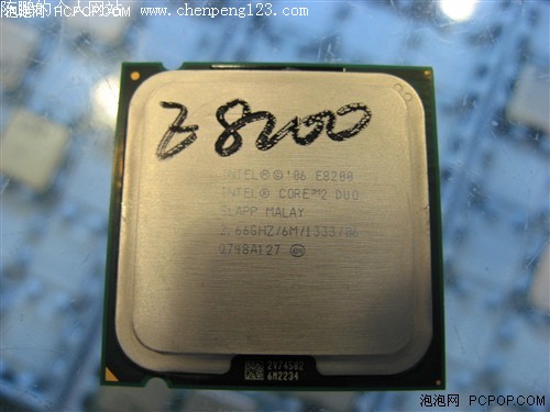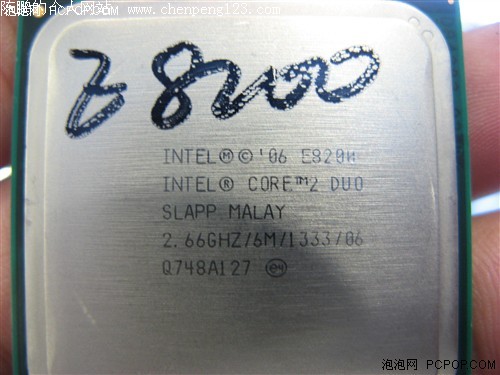 酷睿2 E8200仍采用LGA775接口,生产批次为O748A127,是专供OEM的正式版处理器。最大工作电压为1.225V,产品封装地仍然是马来西亚工厂。