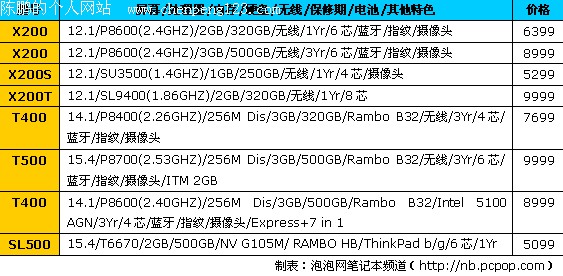 其中T系列送T系列原装皮包+真鼠,X系列送X系列原装皮包+真鼠;SL系列送SL系列原装包;7999以上机型均赠送office盒装正版软件。ThinkPad学生机配置及价格如下。