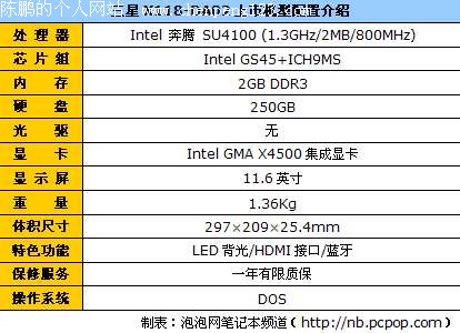 三星X118-DA02配备英特尔奔腾双核SU4100处理器(1.3GHz/2MB/800MHz)、2GB DDR3内存、250GB SATA硬盘。目前,该机型的经销商售价为5184元。