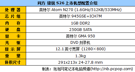 同方锋锐S26-03采用了英特尔GMA 950集成显卡,配合12.1英寸宽屏,标准分辨率为1280×800。