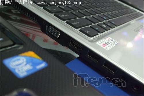 端口方面:3个USB 2.0端口,1个ExpressCard插槽,1个HDMI接口,多功能读卡器,网卡和调制解调器接口,耳机和麦克风接口,VGA端口等。