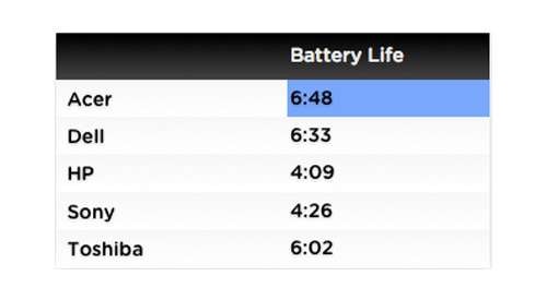 电池寿命测试是在同样的标准设置下进行的:3/4的屏幕亮度,打开FireFox主页,每30秒刷新一下页面。