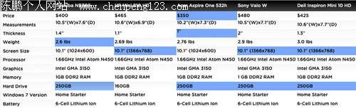我们的测试中使用的都是Intel的Atom N450处理器,之前使用老版处理器,如N270处理器的上网本更便宜,但功能上不够强大,同时在电源使用方面也有问题,所以这里这部分产品就不进行介绍了。