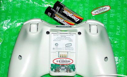 目前还没有假冒的Xbox360无线手柄,但已经有传市面上部分不法商人用翻新的Xbox360无线手柄充当新手柄随新主机一同卖出,不过Xbox360的手柄比DUALSHOCK2有一个简单的分辨方式,每个手柄都会有一个唯一的序列号印在电池仓里,而随机配备的无线手柄都用绿色的塑料袋套住,这个绿色塑料袋上都会贴有一张序列号的标签,两个序列号是一致的。此外随机配备的手柄正面和背面都帖有透明的使用提示贴纸,如果这张贴纸的边缘有点脏或是干脆没有贴纸的话得注意了!随机配送的是两颗装星加坡产的劲量AA电池。新机入手时建议仔细测试一下无线手柄,部分玩家反应质量不甚理想,笔者的Xbox360配备的原装无线手柄十字键左方向按键不太灵敏,轻按则没有反应,所以提醒广大网友切勿被兴奋的心情所影响而降低警惕。
