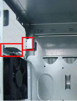 正所谓魔鬼藏在细节,细微之处方显功力,在上图红框中诸位可见电源位四周的几块铁片,那是为了防止电磁辐射从电源接缝位置泄漏的防辐射弹片,可防止电磁辐射泄漏,这些细微的部位通常都是会被忽略的;另外细心的读者可以看到右侧的红框里面的弹片上由三个凸起的小点,那是机箱防辐射弹片上的防辐射弹点,可以进一步提升电源部位的防辐射效果,真是有点米粒上刻字的感觉。 顶板和侧板结合部的防辐射弹点