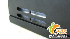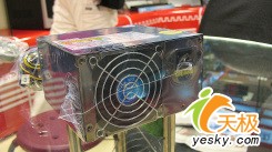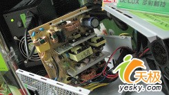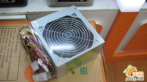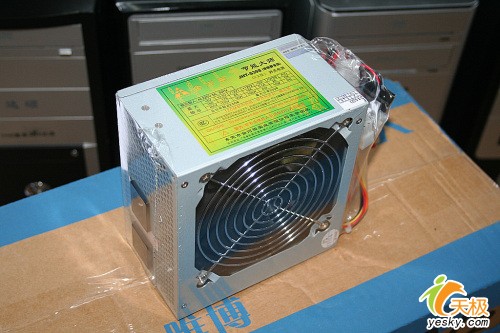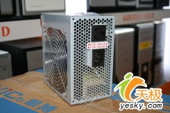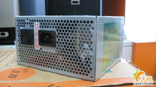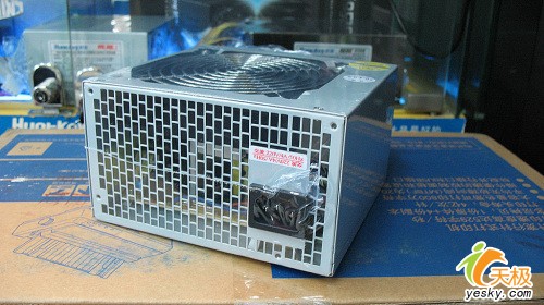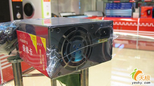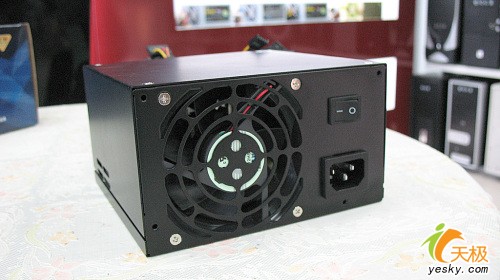 交流电接入端没有提供横吹风扇设计,散热主体是通过顶部向下的12公分风扇进行,较大的扇叶,保障整体整机效果的实施。