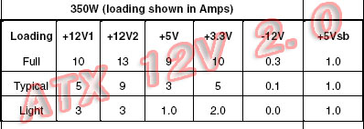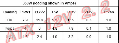 余下两类是ATX12 2.0版和2.2版,二者在+12V输出方面,都是提供双路供给。不同的是:2.2版消弱了12V的持续供电能力,但增大了峰值,确保开机瞬间CPU所需电流的输出。同时,也加强了3.3V与5V的输出能力,照顾到PC主机中SATA磁盘和PATA磁盘数量的日益增多,个人用户对磁盘空间需求的增大。而且,整体为了满足新一代大功耗配件的需要,2.2规范中加入了450W的输出规范。新版450W电源中,双路12V最大联合输出功率可达400W,普通个人用户来搭载双核系统是足够了。另外,+5Vsb的电压的峰值也略有提升,最高达到3.5A的规格。+5Vsb主要是用于USB扩展和待机时电流输出,功率的提升,明显也是眷顾到USB设备的使用。
