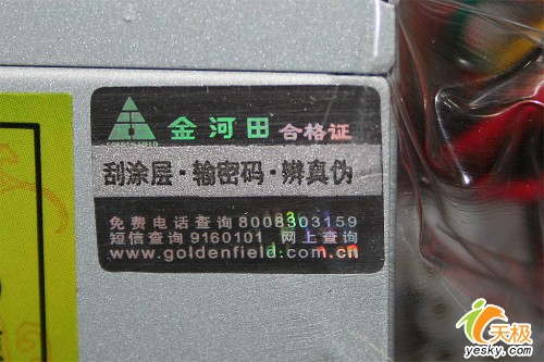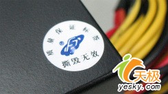 电源外壳顶部,贴有激光防伪合格证书,可通过涂层挂去,进行真伪识别