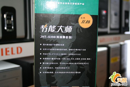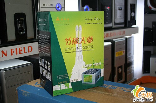 金河田JHT-S398双核静音版电源,包装对“双核和节能理念”着重突出。实际上,S398采用了国内具有领先水平的节能芯片,并且有着先进的节能电路设计和一项专利技术,产品看点是相当突出的。