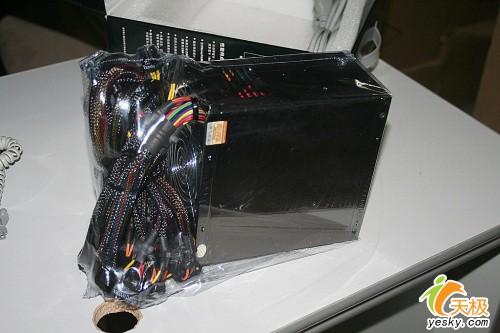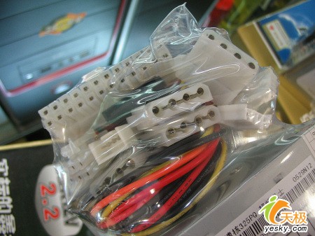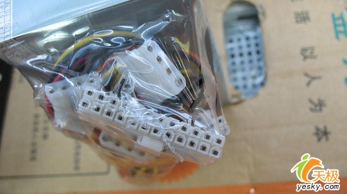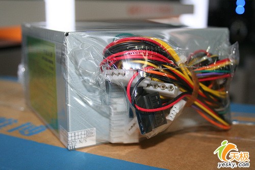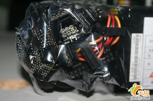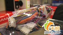 电源提供了各类丰富接口,方形6PIN显卡供电端、24PIN+可拆卸式8PIN、4个SATA、3个PATA和2组软驱。