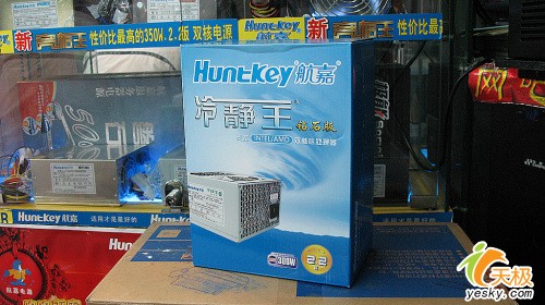 新版冷静王钻石版延续了以往靓丽的湖蓝色包装。对英特尔双核处理器的支持,以及额定300W 2.2版的规格,都有明确的标注。
