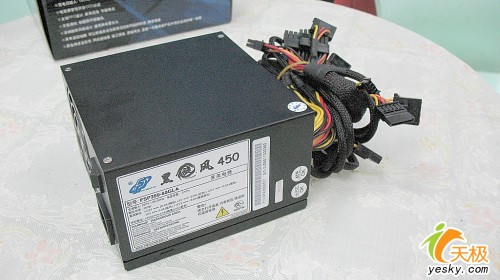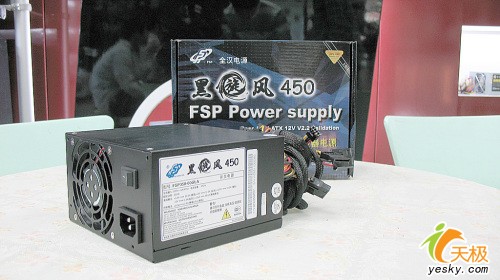 全汉黑旋风450,外观张扬奔放,黑色涂层很容易落下指印,采购时能作为参考依据。规格上,黑旋风450是款主动式PFC电源,较高的有效功率转换,拥有节能的特性。背部安装有8CM风扇,开关线路设计。电源符合英特尔制定的ATX12V 2.2版标准,12V双路输出,满足日益增加的使用需要。另外,节能环节上,该机的待机功耗也小于3W。