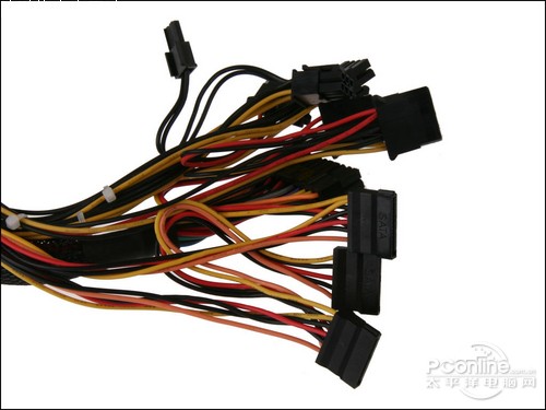 接口方面,先马 超影400感恩版电源的主输出接口20+4pin采用蛇皮网包裹,6+2pin的显卡辅助电源接口为用户使用中高档显卡提供方便,此外电源还提供了3个大4pin和SATA电源接口满足一般用户的需求。