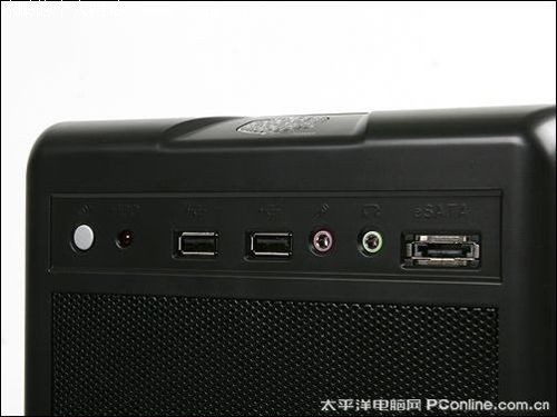 酷冷至尊 毁灭者(RC-K100)机箱的前置面板顶部除了设置有比较传统的两个USB和两个音频接口外,还有一个eSATA接口,这对于一些中高端移动硬盘的使用有很多的好处。