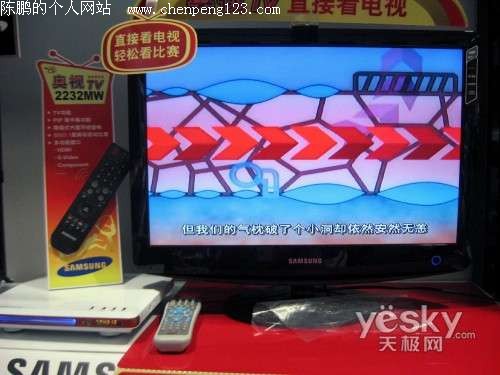 三星 2232MW右上标有产品性能,电源灯旁边有一个红外线接收器