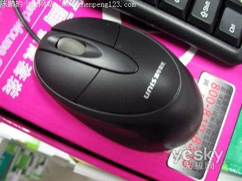 套装中的鼠标造型比较独特,宽大而圆润的造型更利于用户的把持、手感更佳充盈,而且圆滚滚的样子也很可爱。鼠标采用左右对称式设计,背部隆起,在两侧设有凹槽,手感舒适。鼠标的性能能够满足一般使用需要,定位比较准确,按键干脆有力,滚轮刻度感明显。