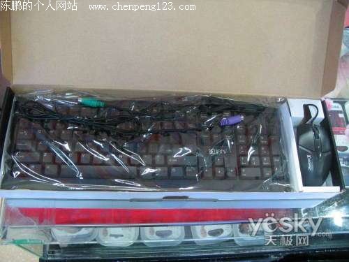 套装中的鼠标采用左右对称式设计,左右手通用,鼠标造型比较狭长,背部隆起。鼠标体积较轻,移动起来很轻巧,定位也比较准确,能够满足一般使用需求,鼠标同样采用USB接口。