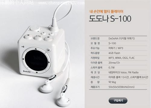 如今数码产品中也只有MP3能折腾出个奇形怪状,今天遇到的这款名为DODONA的MP3选用了正方体的外形设计,但看上去并不呆板,反而跟多了一份可爱,机身体积为50×50×50mm,内置4GB内存,预计售价1160元人民币。