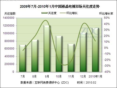 (图)2009年7月-2010年1月中国液晶电视市场关注度走势