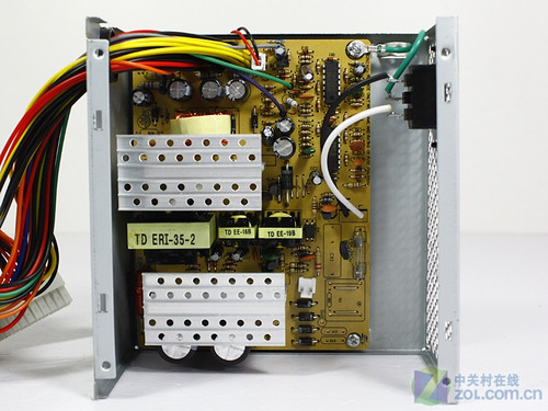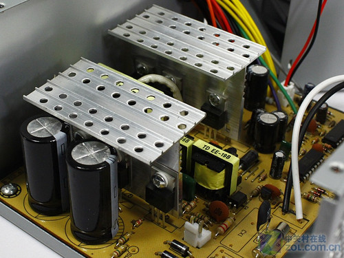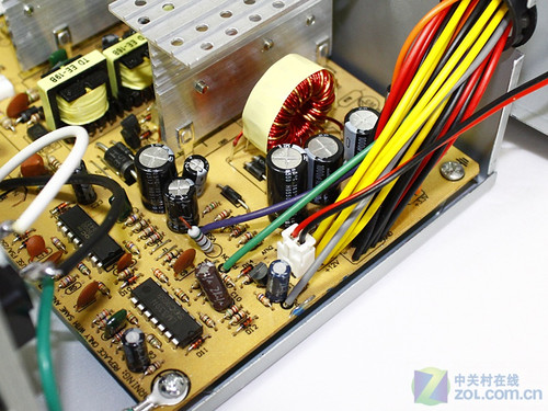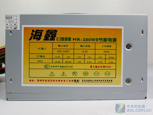 海鑫380W是所有参测山寨电源中做工最“精细”的一款,虽然用料也已经省到了极致,不过内部细节上洁净和整齐。