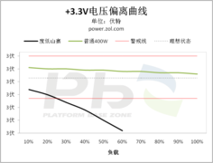 电压偏离的表现非常糟糕,除了5V输出,12V和3.3V均大大超出了Intel的安规,如果长期使用的话会对PC配件造成很大的损害。