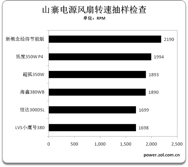测试数据应该用恐怖来形容,基本上所有山寨电源的风扇转速都是极具上升,而温度更是高居不下,何谈静音效果……