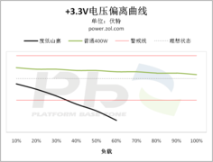 纹波抑制看着让人揪心。各路均不符合Intel的安规,而5V和3.3V甚至从10%、20%负载(也即是说出为50W左右时)就已经严重超出了规范,这将会对硬盘、内存等PC配件造成很大的伤害。