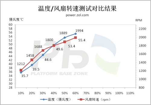 风扇转速和出风口温度双线其飙升,噪音非常明显,而且如此之高的温度势必会让这些可怜的山寨电源再度折寿。