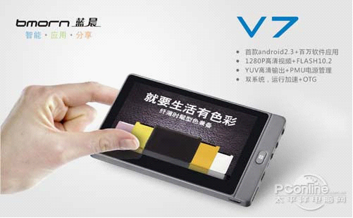 蓝晨V7来说,具备Melis+Android2.3双系统,视频解码没有短板,最高支持1280P高清电影播放,真高清,更震撼!另外,在flash上,蓝晨V7支持flash10.2,在flash体验上十分的优异。
