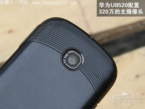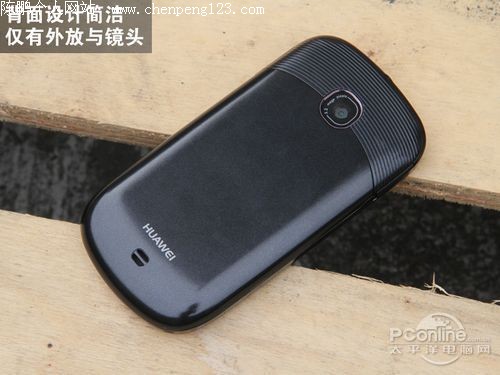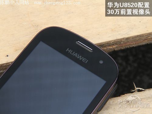 作为一款WCDMA制式的3G手机,前置摄像头是必不可少的。顶部除了摄像头以外还有华为的Logo与听筒。