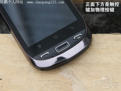 正面的物理按键部分由间条条纹衬托,虽然使手感比较好,但同时影响了手机外观的美感。物理按键处比屏幕稍微突出,用起来手感很好。