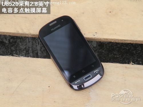 华为U8520采用直板式设计,正面由两部分组成,分别是物理功能按键与触摸屏幕。屏幕大小为2.8英寸,与现在主流触屏手机比起来显得有些小气。