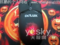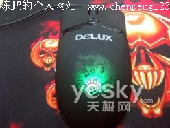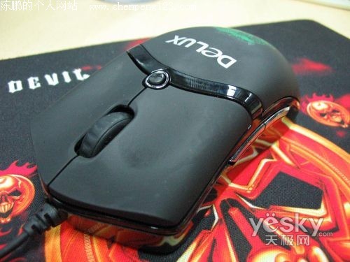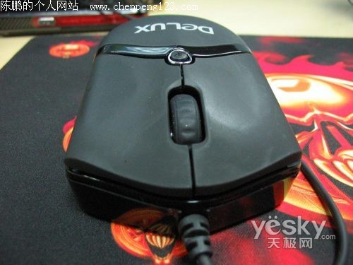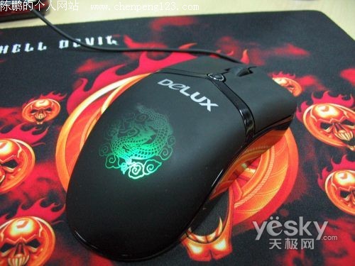 多彩T6游戏鼠标的形状比较狭长,人体工学设计,手感相当不错。多彩T6游戏鼠标表面采用防滑而且又吸汗的磨砂材质,触感舒适,底部则采用了耐磨性很高的ABS钢性材质。在多彩T6游戏鼠标的左右按键上设计有放置手指的凹槽设计很人性化,按键反馈灵敏。多彩T6游戏鼠标滚轮采用了大阻槽设计,使用中刻度感很清晰,方便玩家切换使用。多彩T6游戏鼠标采用镂空式的透光设计,多彩T6游戏鼠标背部在使用时会亮起龙形图案的光芒,用户在切换不同的分辨率时背光的颜色也会随之改变,设计相当独特,具有摄人心魄的魔幻美感。
